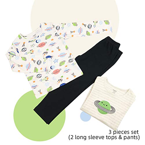 Oneiric P Pigiama per Bambini Pigiami Completo a Due Pezzi Completo Cotone a Maniche Lunghe 3 Pezzi Set 2 Shirst e 1 Pant per Ragazzi Ragazze 100-140 cm 2-7 Anni (Pianeta,140cm)