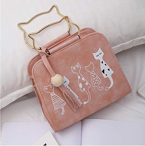 OneMoreT - Borsa a tracolla da donna, a forma di gatto, rosa
