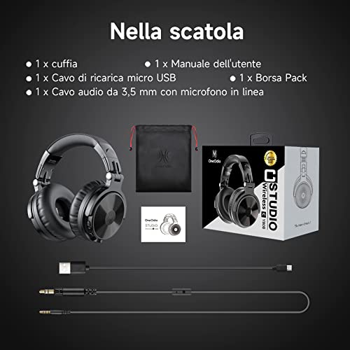 OneOdio Pro C Cuffie Bluetooth Over Ear Wireless Audio, con Microfono 110 Ore di riproduzione, Pieghevoli con Altoparlante al Neodimio da 50 mm for Pad/Phone/PC