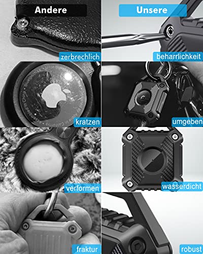 ONEONTA Portachiavi Airtag - Porta Airtag Apple - Custodia Airtag Impermeabile - Cover Airtag - Portachiavi Apple Airtag Carbonio, Resistente, Nero
