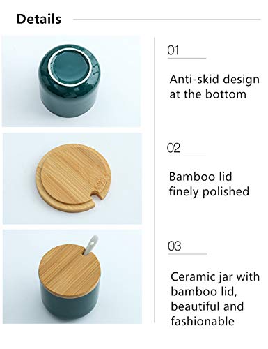 Coperchio in bambù e cucchiaio in ceramica sono pratici, può essere collocato un condimento da 260 ml per soddisfare le esigenze quotidiane della famiglia