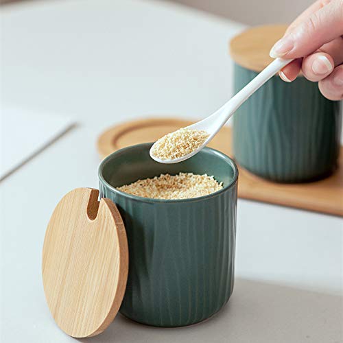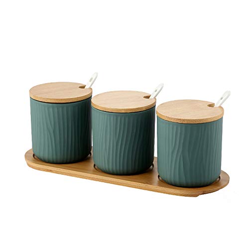 OnePine Set di 3 Zuccheriera, Zuccheriera in Ceramica Rotonda con Coperchio e Cucchiaio, Design Elegante, per Casa e Cucina