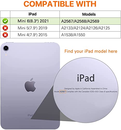 ✿ [Compatibilità]: Soprattutto per il modello iPad Mini 6 2021 8,3 Pollici. Conferma il modello prima dell'acquisto (Impostazioni / Configurazione → Informazioni sul dispositivo → Modello).