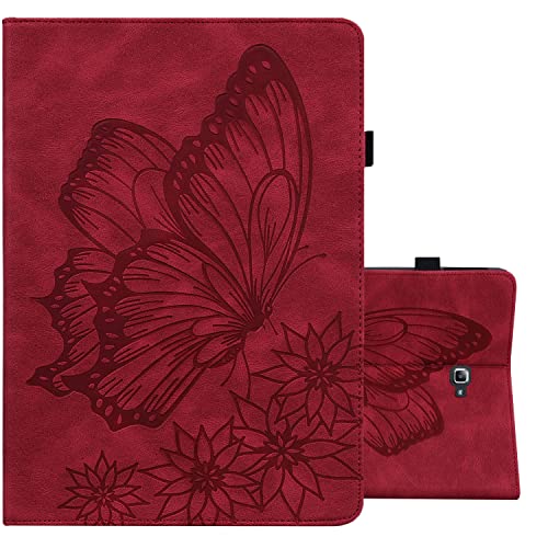 ONETHEFUL Custodia Libro Cover per Samsung Galaxy Tab A / A6 10.1 Pollici 2016 T580 T585 Tablet Custodie Protettiva Retro Motivo a Farfalla Covers con Stand e PU Pelle - Rosso