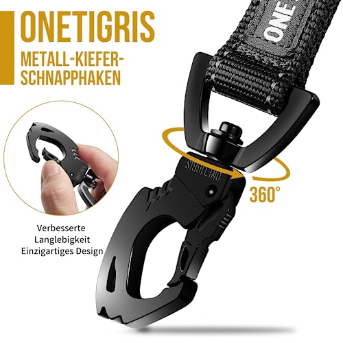 OneTigris Bolt Guinzaglio corto per cani 52 cm, guinzaglio corto con denti di tigre in metallo e morbida imbottitura, riflettente, in nylon, adatto per cani di taglia media