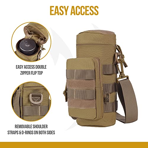 OneTigris Outdoor Molle - Porta borraccia con chiusura lampo (nylon 1000D), colore: Marrone