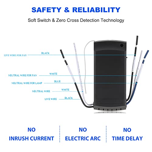 ✔3 Fan Speed - Progettato per controllare individualmente la velocità e l'illuminazione del ventilatore da soffitto.