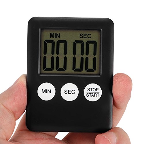 ONEVER Timer cucina, Fashion Simple Super Thin LCD Digital Screen Timer da cucina Quadrato Timer da cucina Count Up Countdown Allarme con magnete (Nero)