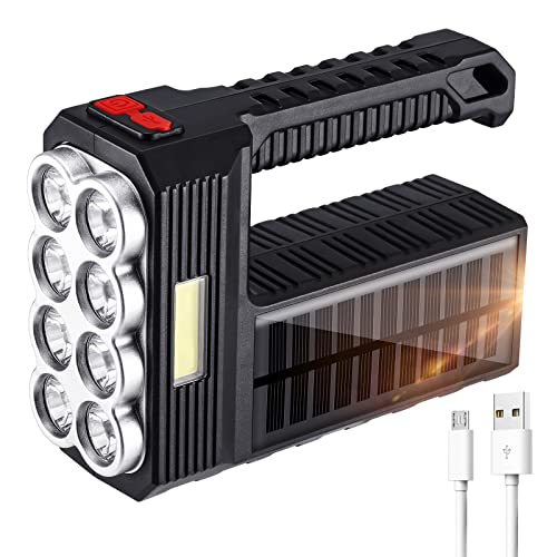 ONEVER Torcia a mano, 8 LED a energia solare, torcia portatile ricaricabile, COB da lavoro, impermeabile, per campeggio, escursionismo, emergenza