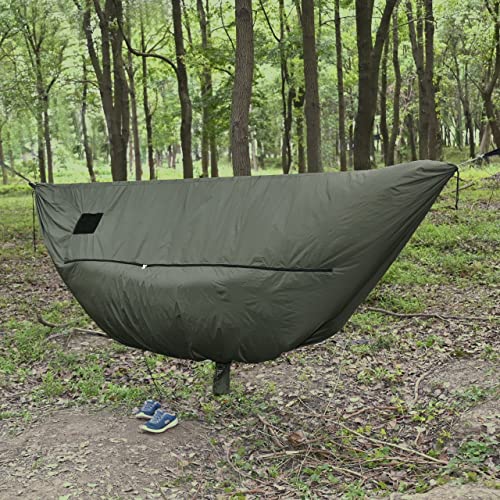 Caldo e confortevole. Rimani caldo e comodo nell'amaca durante le notti fredde o le condizioni meteorologiche avverse. Questa copertura per amaca è resistente al vento, quindi blocca i venti freddi in inverno e aiuta a proteggere i campeggiatori dal windchill. È anche completamente chiuso per aggiungere un ulteriore strato di isolamento creando un microclima intrappolando il calore all'interno del calzino per la temperatura più ideale.