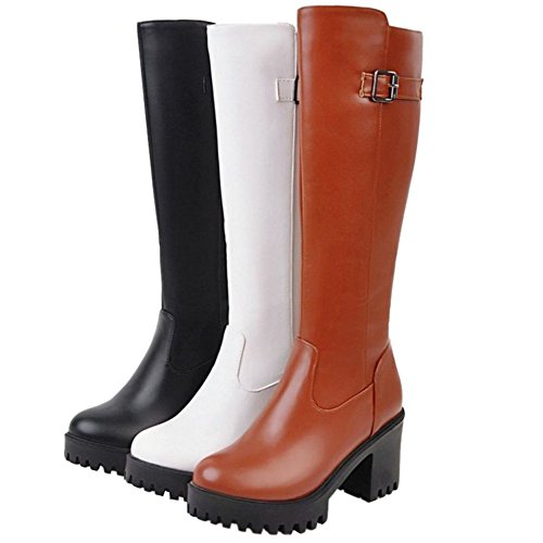 Onewus - Stivaletti da donna con tacco a blocco, punta rotonda, Nero (Nero ), 38 EU