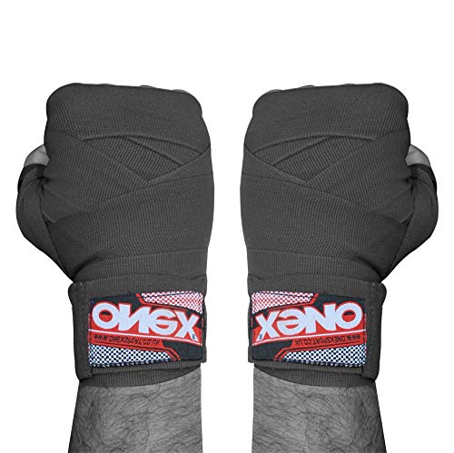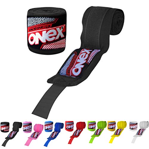 ONEX Pugilato Protezioni Fasce Boxe Bende per Mani Polsi Bendaggi MMA Fight Activewear Cotone 2,5 m (Nero)