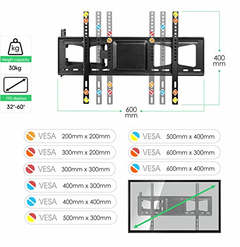 Staffa TV adatto a schermo piatto supporta le norme VESA: | 75 x 75| 100x100 | 200x200 | 300x200 | 300x300 | 400x200 | 400x400 | 600 x 400| Verificare le distanze tra i fori