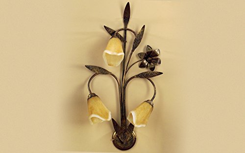 ONLI 4230/Ap3 Applique 3 luci in Metallo Marrone spennellato Oro e vetri Ambra