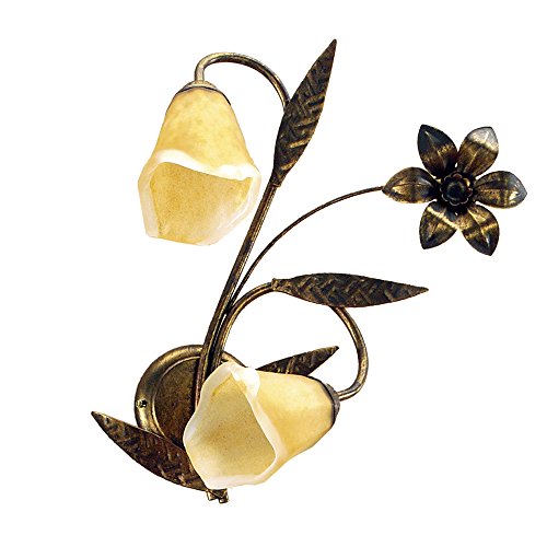 Molto elegante il motivo decorativo a tema floreale, con fiori e foglie che si allungano tra i due paralumi. Ideale per il corridoio, la zona giorno o la camera da letto.