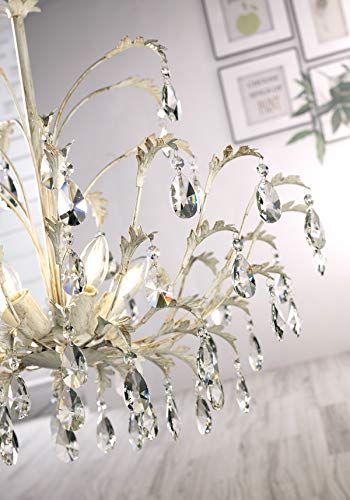 ONLI Cesta Lampadario 5 luci in Metallo Avorio spennellato Oro con Gocce in Cristallo Pendenti