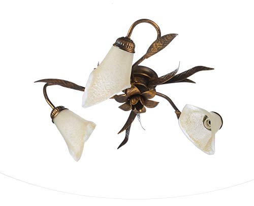 ONLI Forgiata - Lampada da Soffitto 3 Luci, Vetro opaco color Ambra, Metallo Marrone spennelato Oro