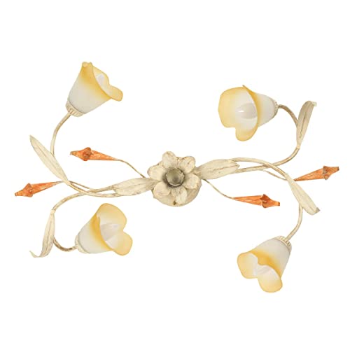 ONLI Lucrezia - Plafoniera / Lampada da soffitto 4 luci. Metallo avorio spennellato oro, vetri bianchi a forma di calla con sfumatura ambra., vetro