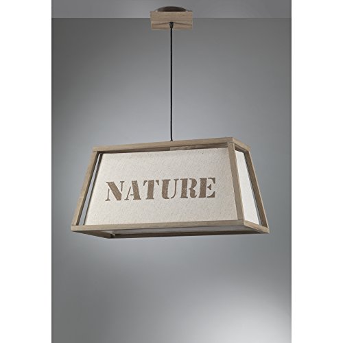 Paralume in tessuto color sabbia decorato con scritta "Nature" in tonalità tortora;