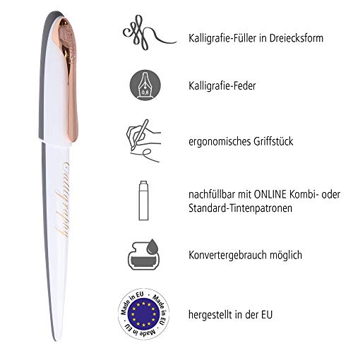 Online Penna stilografica per calligrafia Air bianco oro rosa con tratto da 0,8 mm, per cartucce standard o convertitori, con cartuccia combinata blu, 10040/3D