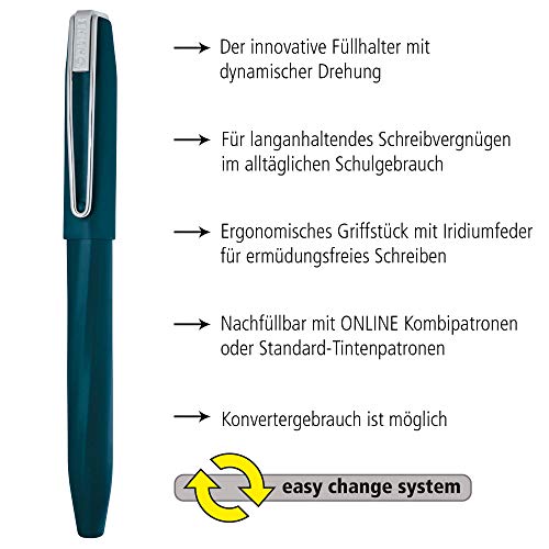 Online, Slope, penna stilografica, colore: acquamarina Penna stilografica, pennino M Blu notte