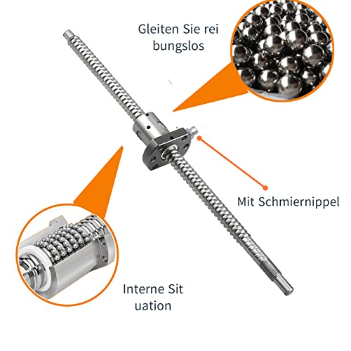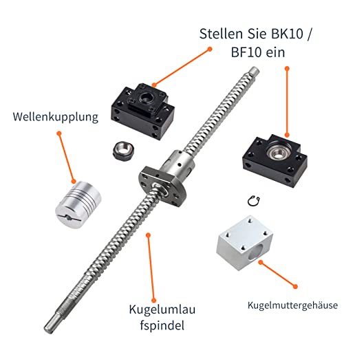 ONLISUM SFU1204 - Vite a sfera 500 mm, in acciaio inox, con supporto BK10/BF10, alloggiamento del dado e frizione per automatizzato
