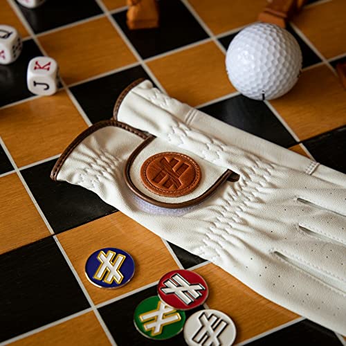 Not [only a] Golf Brand - Guanto da golf Premium per uomo, inverno ed estate, stile retrò, in pelle sintetica e morbida cabretta, per mano destra, colore bianco e marrone - taglia M-L