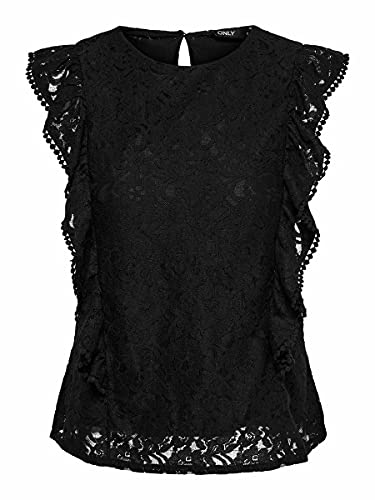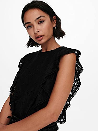 ONLY Maglia da donna in pizzo con volant MBlack, Nero