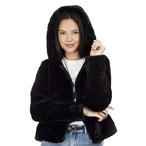 Only Onlchris Fur Hooded Jacket Otw Noos Giacca, Nero (Black Black), X-Small Donna