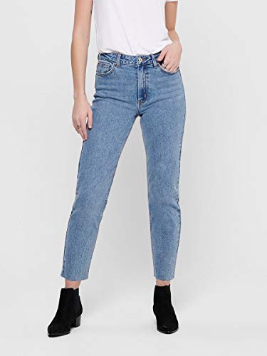 Only ONLEMILY HW ST Raw Crop Ank MAE06 Noos Jeans, Denim Blu Chiaro, 27/32 Donna