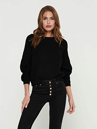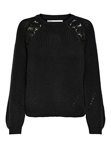 Only ONLMAGA Life L/S Pullover Knt Noos Maglione, Black/Detail:DTM Lace, M Regular Donna