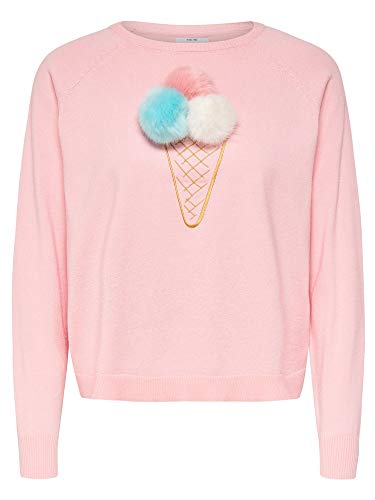 Only Onlvally L/s Pullover Box Knt Felpa, Rosa (Strawberry Cream Begonia Pink/cl.Dancer/Frosted Almond Pom Poms), 36 (Taglia Produttore: Small) Donna