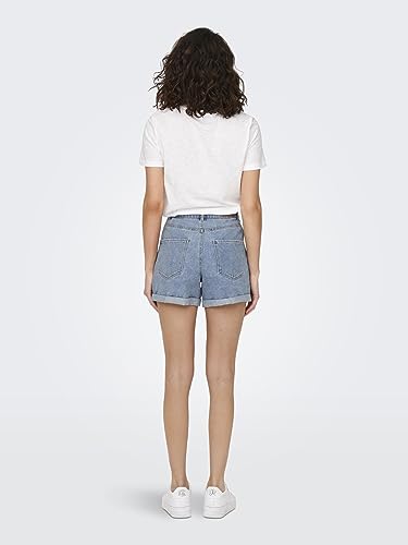 ONLY Onlvega HW Mom DNM-Pantaloncini Noos, Blu (Light Blue Denim Light Blue Denim), M Donna