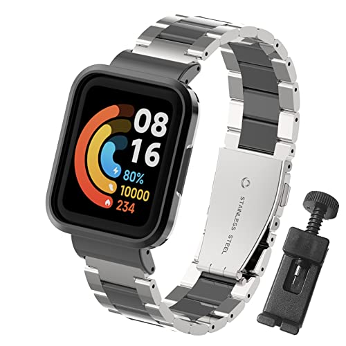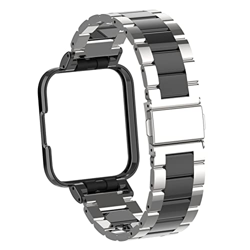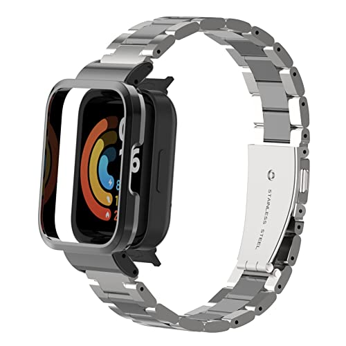 Onlyct Cinturino Compatibile con Redmi Watch 2 Lite Cinturini, Bracciale di Ricambio in Acciaio Inossidabile con Custodia in Metallo per Redmi Watch 2 Lite, Nero argento