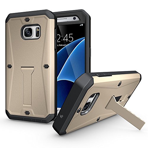 OnPrim Tank Armor Heavy Duty Series Flexible Rubber And Hard PC 3 In 1 Hybrid Defend Case Built-in Kickstand Holder For Samsung Galaxy S7 Edge 5.5 Inth Gold