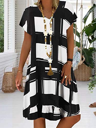 Onsoyours Abito Estivo da Donna Boho in Lino con Scollo V Pois Larghi Pois Manica Corta Casual Allentato Lungo al Ginocchio Lunghezza Una Linea Abito da Spiaggia C Nero 40
