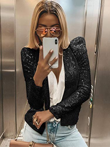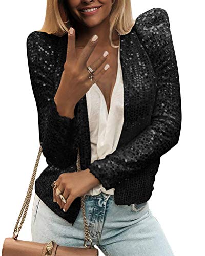 Onsoyours Blazer da Donna Giacche Eleganti con Maniche Lunghe con Paillettes Cardigan Giubbotto Cappotti Classico Outwear Donna Blazer Bolero Slim Fit Nero 48