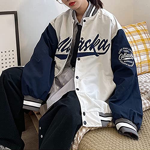 Onsoyours Bomber Jacket Giacca Donna Giacca Outwear Cerniera Giacca College Sweat Jacket Vintage Streetwear con Tasca Patchwork Oversized Giacche Cappotto Sportiva Jackets N Bianco L