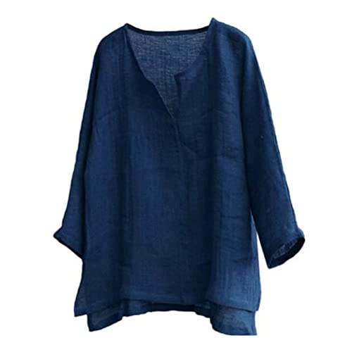 Onsoyours Camicia Uomo a Maniche Lunghe in Tunica con Scollo a V Camicetta da Uomo Traspirante Comoda Tinta Unita Regular Fit Manica Corta Allentata Maglietta Casual A BluScuro L
