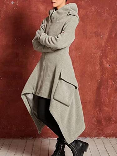 Onsoyours Donna Felpe con Cappuccio Manica Lunga Scollo a V Top Casual Chic Eleganti Tinta Unita Lungo Giacca Primavera Giubbotto Giubbini Cappotti A Grigio XS