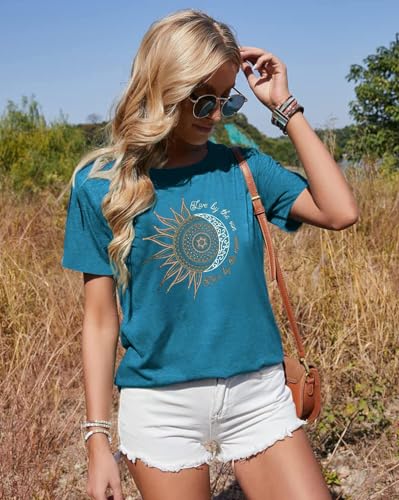 Onsoyours Donna Magliette Manica Corta con Stampa Luna e Sole T-Shirt da Donna con Scollo Rotondo Maglietta Ampia da Donna con Girocollo Casual A Blu Navy M
