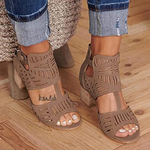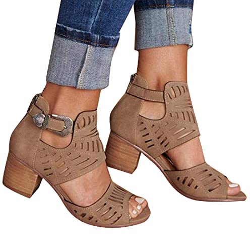 Onsoyours Donna Sandali Estivi Eleganti Tacco A Blocco Open Toe Fibbia Cinturino alla Caviglia Piattaforma Sandals da Spiaggia Bocca di Pesce Scarpe con Zip A Marrone 35 EU