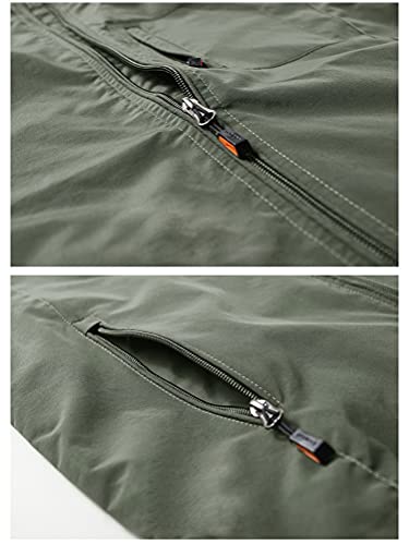 Onsoyours Giacca con Cappuccio Rimovibile Giubbotto Antivento Leggero e Caldo Manica Lunga Autunnale Anorak Casual Multitasche Cappotto Vintage da Moto Uomo ArmyGreen L