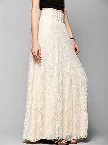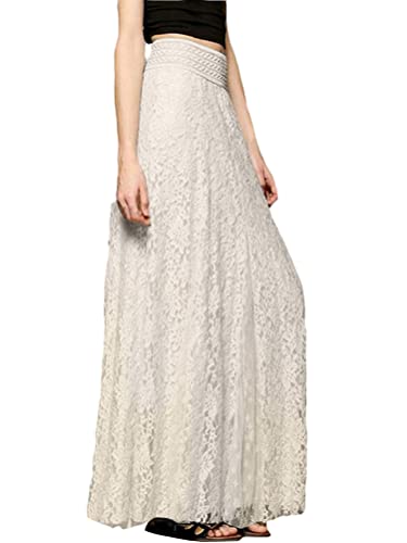 Onsoyours Gonna Donna Elegante in Pizzo Gonna Lunga in Tulle Vita Alta Elastica A-Linea Gonna da Spiaggia per Vacanze Casual Ragazza Gonna in Pizzo Multicolori Beige XXL
