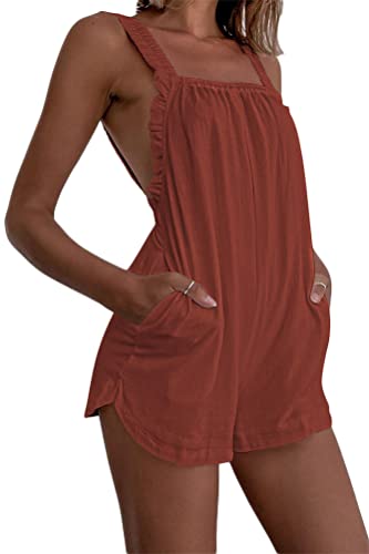 Onsoyours Monopezzi e Tutine Jumpsuit da Donna Vestito Corto Tinta Unita Canotta Pantaloni Estivi Casual Beachwear Elegante Copricostumi Estivi Mare RossoMattone XL