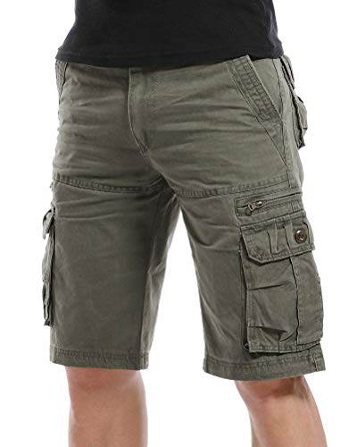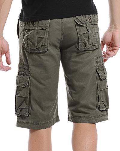 Onsoyours Pantaloni Corti Bermuda Cargo Pantaloncini Uomo Lavoro Pantaloni Tasconi con Elastico Estive Casual Pantaloncino Jogging Spiaggia Shorts A Scuro Verde dell'Esercito XX-Large