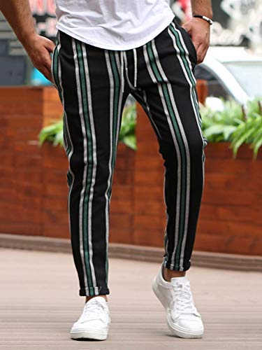 Onsoyours Pantaloni Uomo Lunghi Cargo con Coulisse Tasche Laterali Trousers della di Sport Pants Elastici Casual a Righe Pantaloni Slim Fit Verde X-Small