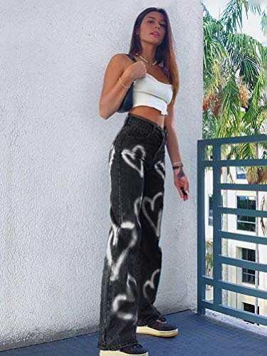 Onsoyours Pantaloni A Zampa D'Elefante Donna A Vita Alta Slim Pantaloni Flare Stretto Elasticizzati Lungo Pantaloni Bootcut Strappati Buco Denim Pantaloni Casuale Y Nero 2XL
