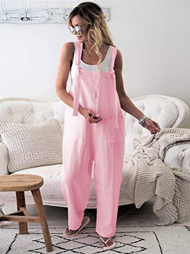 Onsoyours Salopette in Lino con Maniche a Giro da Donna Pantaloni Siamesi Donna Romper Sling Senza Maniche Pantaloni Larghi Tuta Casual A Rosa IT 48