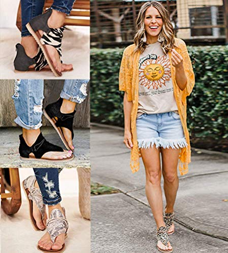 Onsoyours Sandali Casual Estivi Donna Sandali Vintage Donna con Tacco Piatto Indietro Cerniera Leopardo Sandali Infradito Tinta Unita Scarpe Viaggio Spiaggia B1 Leopardo 43 EU